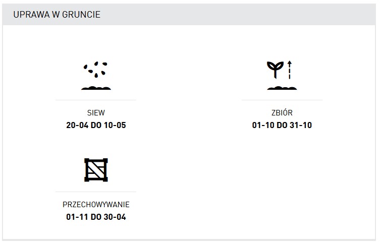 W gruncie wysiewać od 15 kwietnia do 15 maja. Norma siewu: od 0,7 do 0,8 mln nasion na ha. Bujna i zdrowa nać sprawia, że zbiór mechaniczny jest bardzo ułatwiony.